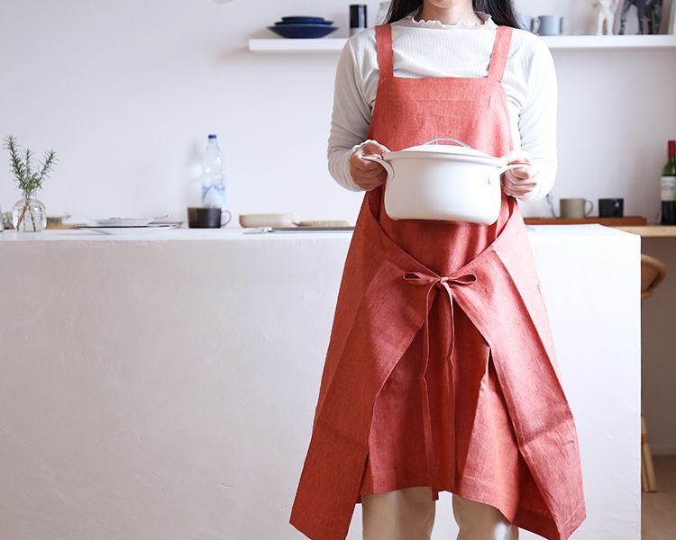 母の日ギフトとして、たくさんのオーダーをいただいたオリジナルデザインのリネン100%エプロン。男性用もございます。何度も洗ううちに繊維がこなれて、くったりしてくるのがリネンの特長。無造作に丸めてもしわが気にならないから、キャンプなどにももっていけます。
