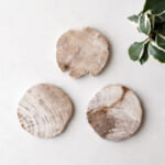 膨大な年月のなかで古代の樹木が地中で化石化した「珪化木(ペトリファイドウッド)」のプレート。石の冷たさと木の温もりを併せ持つ、不思議な質感があります。ラフに切り出したエッジの表情が、テーブルの上で力強いアクセントに。コースターとしてはもちろん、アクセサリートレイやキャンドルホルダーとして、インテリアに自然界の神秘的なエッセンスを添えてくれます。