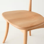 座面をよく見るとお尻の形にフィットするように作られているのがお分かりでしょうか。こちらは座面の角度や座面を立体的に削る「座繰り加工」という技術で、熟練の職人さんによって丹念に磨き上げられています。「木のイスは座面が硬く、お尻が痛くなりがち…」という固定観念を取っ払ってくれるほど、長時間座っていても不思議と疲れない座り心地を提供してくれます。