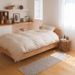 天然木のベッドフレームは、ひとつとして同じ木目が存在しません。節や色合いの違いが、唯一無二の表情を生み出します。時間とともに深みを増す色の変化も楽しみのひとつ。使うほどに愛着が増し、自分だけの家具へと育っていきます。