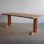 複数の木でつくられるこのテーブルは、重厚感のある一枚板とは違った魅力があります。天板は約27mmと一般的な一枚板の1/2程の厚さで軽やかな印象です。個性のある椅子やラグと相性よくまとめてくれる包容力と柔軟さがあります。ダイニングルームの中心的存在でありながら、ほかのインテリアを引きたてて調和する、そんなイメージです。