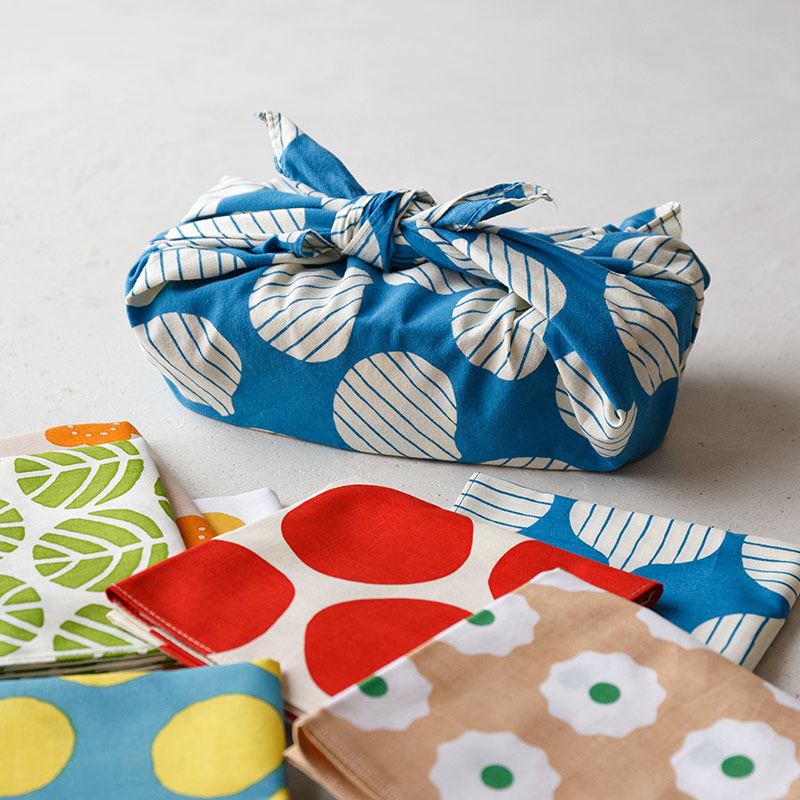 風呂敷: 四方を縫製して仕上げていますが、綿紬(めんつむぎ)などの素朴な風合いを活かしているため、端から糸が出ることがあります。無理に引っ張らずハサミでそっと整えてあげてください。