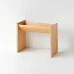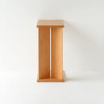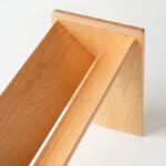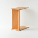 意外と作るのが難しいシンプルなサイドテーブル。コの字型に組んだだけでは強度が不十分で力を掛けたときに壊れやすいため、一工夫が必要です。こちらのサイドテーブルは支柱をV字型にすることで強度がアップ。横にしたときにはV字の部分には本も置けるので、デザイン性も兼ね備えた造りになっています。