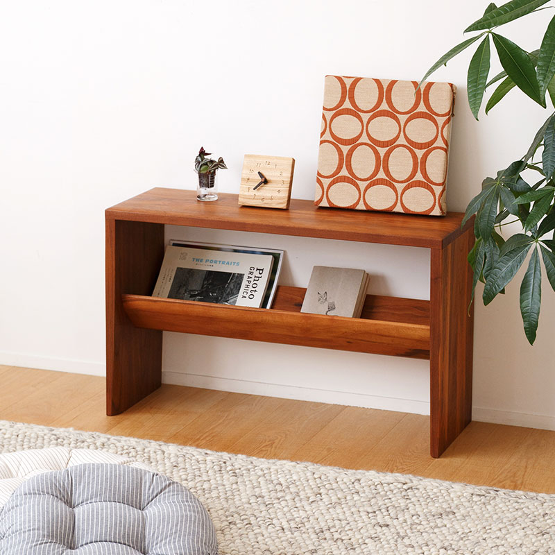 細長い形のサイドテーブルなので、奥行きのあるソファにもぴったり。「ソファの側」「ソファとソファの間」「ソファの手前」に置くだけでなく、壁にぴたっとつけてちょっとした棚としても使うことができるので、置き場所を変えながら模様替えを楽しめます。