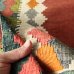 キリムは、遊牧民によって織られてきた平織りの織物のこと。 遊牧民にとって、折りたんで持ち運べるキリムはなくてはならない生活用具です。敷物、布団や衣類の収納、穀物や塩の食品袋など暮らしの中で様々な用途に使われていました。