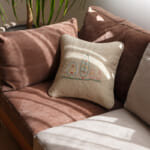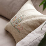 アイボリーのウールキリムをベースにシルク入りの糸でかわいらしい刺繍を施した素朴なクッションカバー。