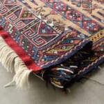 キリムは、遊牧民によって織られてきた平織りの織物のこと。 遊牧民にとって、折りたんで持ち運べるキリムはなくてはならない生活用具です。敷物、布団や衣類の収納、穀物や塩の食品袋など暮らしの中で様々な用途に使われていました。