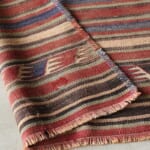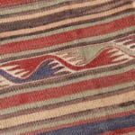 キリムは、遊牧民によって織られてきた平織りの織物のこと。 遊牧民にとって、折りたんで持ち運べるキリムはなくてはならない生活用具です。敷物、布団や衣類の収納、穀物や塩の食品袋など暮らしの中で様々な用途に使われていました。