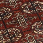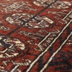 中央には、規則正しく並ぶ丸みを帯びたギュル文様。部族や家柄を示す紋章のような役割を持っています。ボーダー(縁取り部分)も緻密な文様が織り込まれ、配色、文様のバランスともに見事な一枚です。