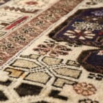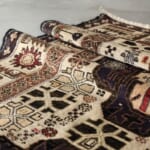 尚、海外の土足の生活で使用していたものが多く、遊牧民が使用していたラグは屋外に近い環境で使われていたものもあります。そのため、洗浄をしても砂や埃が取りきれない場合もございます。予めご了承ください。