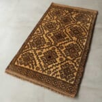 羊毛そのものの色味を生かした生成りからブラウンの濃淡で構成された配色は、落ち着きがあり、トライバルラグが初めてのかたにもおすすめです。