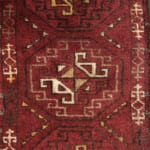 深い茜色のフィールドに並ぶのは、ノマドの道しるべである「星(スター)」のメダリオン。その周囲を囲む「S字文様」は、生命の源である「水」や「守護神」を象徴しています。カクカクとした力強いラインには「魔除け」の願いも込められており、家族の安全と豊かな暮らしを願う、遊牧民の祈りが一枚のデザインに凝縮されています。