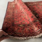 尚、海外の土足の生活で使用していたものが多く、遊牧民が使用していたラグは屋外に近い環境で使われていたものもあります。そのため、洗浄をしても砂や埃が取りきれない場合もございます。予めご了承ください。