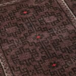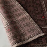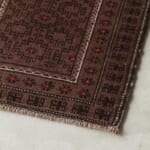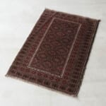 中央に配置された連続するダイヤモンド型のメダリオンは、アフガニスタンラグの古典的な意匠です。周囲を囲む幾何学的なボーダー(縁取り)には、魔除けや家内安全の願いが込められた伝統的なモチーフが見て取れます。ノマドの自由な感性が反映されており、きっちりとしすぎない「ゆらぎ」が、手織りならではの深い味わいを生んでいます。