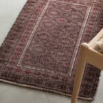 30年近い歳月を経て、落ち着いた色彩とウール特有の美しい艶(照り)が生まれています。チェストの前やパーソナルチェアの足元に馴染むサイズ感で、使い込むほどに増す渋みはヴィンテージならでは。日常の中で「育てる楽しみ」を味わえるラグです。