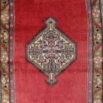落ち着いた渋い赤が印象的なこのラグは、1970年代に織られました。織り込まれている様々な文様は緻密で繊細です。長い年月を経て風合いが増し、肌ざわりもやわらか。イランのラグ特有のぎっしり詰まった織りで文様が映えます。