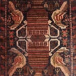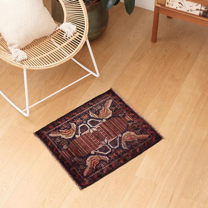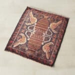 1990年代に織られた小さな絨毯。自由を象徴する鳥が描かれた、物語性を感じさせる一枚です。小ぶりながらも、重厚感のある雰囲気をお楽しみいただけます。