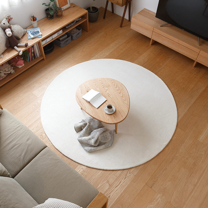 ソファ前や一人掛けチェアの足元、ベッドサイドなど、ポイント使いにもおすすめです。やわらかなラインが加わることで、お部屋にやさしい表情を添えてくれます。