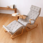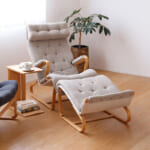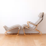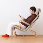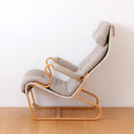 くねっと曲がった椅子のラインに沿って、すっぽりと全身をあずけられるラウンジチェア。程よい弾力感で力がふわっと抜ける極上の座り心地です。こちらの椅子は、北欧の家具デザイナー、ブルーノ・マットソンと日本の天童木工が共同で生み出しました。同シリーズのブルーノ・マットソンソファと併せて、不朽の名作家具のひとつです。