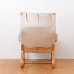 スウェーデンを代表する建築家ブルーノ・マットソンは、1974年に六本木で開かれた日本初の自身の個展をきっかけに来日し、自らのスケッチを手に山形の天童木工を訪れました。日本の暮らしに合う椅子を目指し、畳に優しい「床摺り」構造を提案するなど、日本文化への理解も深く、かなりの“日本通”だったそう。そんな日本の暮らしに根付いた細やかな気配りと、北欧家具の美しさが見事に組み合わさった名作家具です。