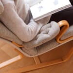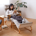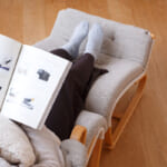 いちばんに目を引かれるのが、細くしなやかなこの木のフレーム。最低限の素材が使われ、かつ強度もしっかりとあるこのフレームは「成形合板」という職人の高い技術で作られています。見た目の大きさの割には軽く、床に滑らせても傷がつきにくい「床摺り(ゆかずり)」という脚がソリのような構造のため、移動が簡単にできます。もちろん、畳でのご使用にもおすすめです。