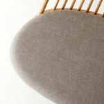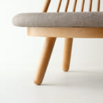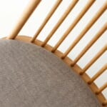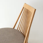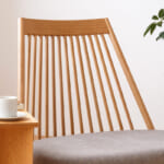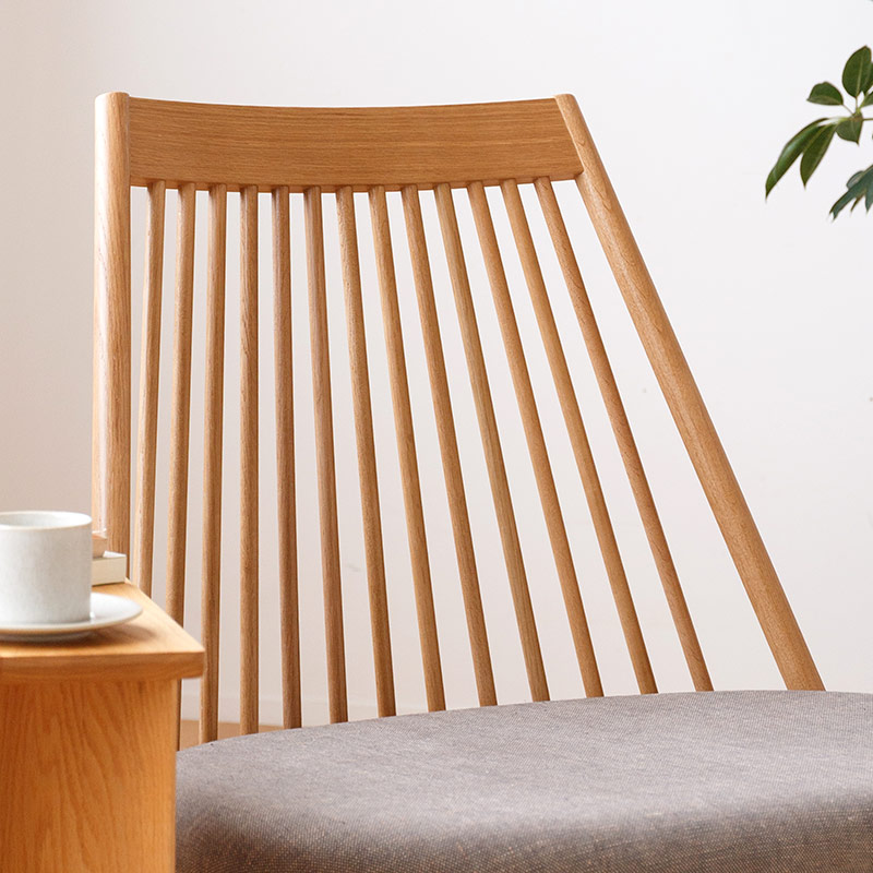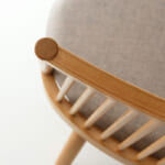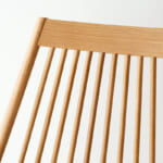 背もたれは13本の細い木でつくられ、計算された角度で背中をやさしく支えてくれます。高さがあるため背中をあずけても安心でき、ほどよい抜け感のあるデザインが空間に溶け込みます。