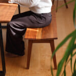 すっきりとした板座は、木の質感をダイレクトに楽しめる仕様。季節によってひんやり感じる場合は、シートクッションを敷くのもおすすめです。気分や季節に合わせて、座り心地を手軽にアレンジしてお使いいただけます。