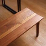 シンプルな形で贅沢に無垢材を使用したベンチ。木目や色合いは一台一台異なり、使い込むほどに艶が増していきます。時を重ねるごとに暮らしになじみ、家族とともに育っていく素材ならではの魅力を感じていただけます。