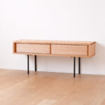| 素材 | 天然木 / レッドオーク・チェリー・ウォールナット 天板 / 無垢板 側板・棚板 / 突板 引き戸 / 突板(取手部分は無垢材) 脚 / スチール |
