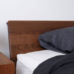 角を丸く丁寧に仕上げた総無垢材のヘッドボードは、どんなインテリアにも馴染みやすく、さらに寝室を穏やかでやさしい印象にしてくれます。一日の終わりに心までほっと癒してくれるような自然のぬくもりあふれるベッドフレームです。