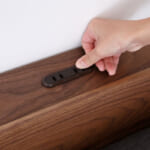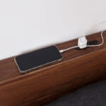 ヘッドボード背面には、スマートフォンの充電や照明の設置に便利なコンセント付きの棚板がついています。寝る前の読書やちょっとした動作も快適になりそう。