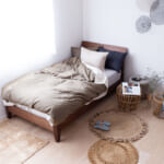 マットレスにかけるシーツはパリッとした素材だとサイズが違うのが少し目立つかもしれませんが、柔らかなリネンやコットンのものをお選びいただければ自然にお使いいただけます。