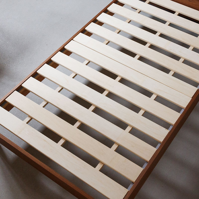 このベッドが愛され続けている理由のひとつに、「サイズ」があります。既製品でよく見るのは<シングル/セミダブル/ダブル>が多いと思いますが、こちらのベッドには「ワイドシングル」というサイズがあります。これは「シングル=幅100㎝」と「セミダブル=幅120㎝」の間、「ワイドシングル=幅110㎝」という大きさ。